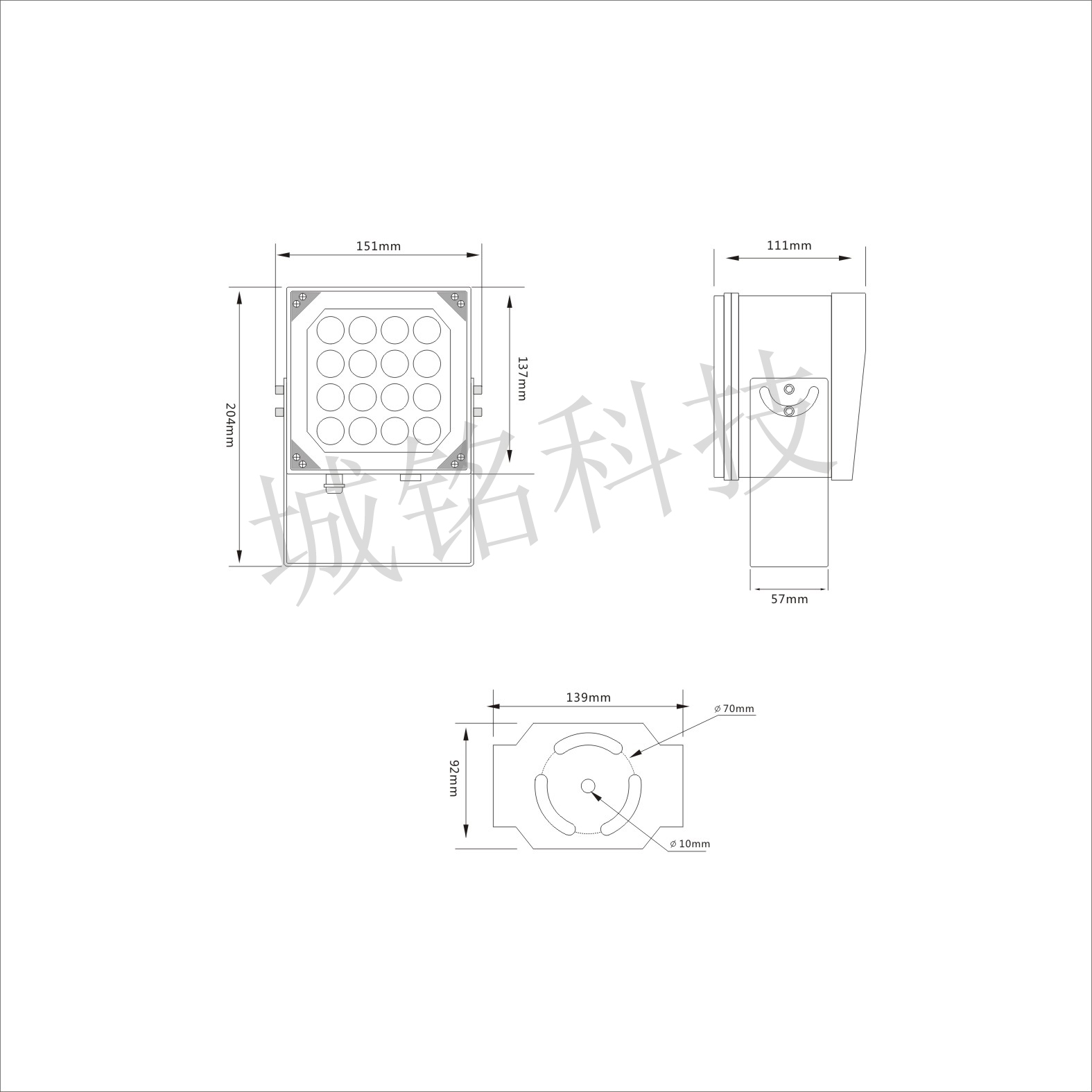 鋁合金燈體,鰭片式散熱結構,面罩采用鋼化玻璃
